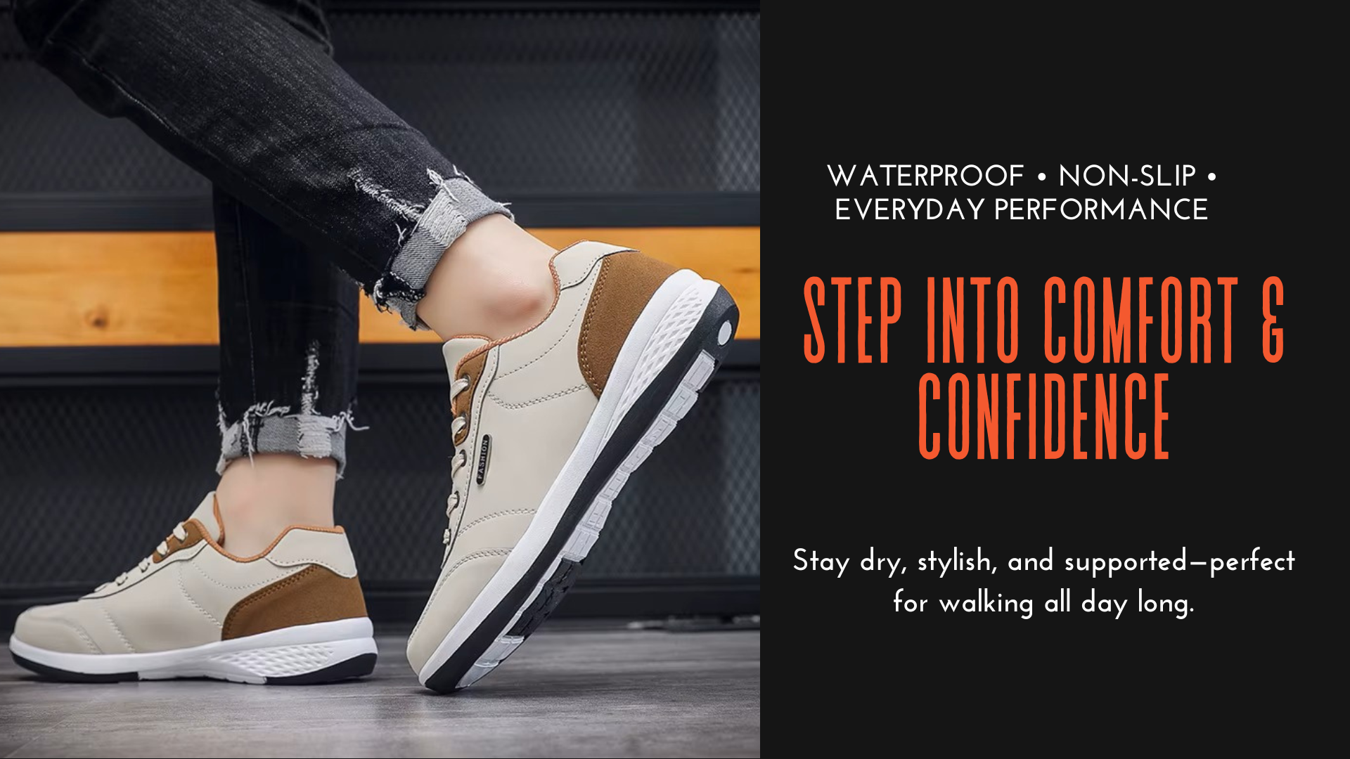 Redefine your daily footwear with these lightweight, waterproof leather sneakers designed for modern men on the move. With a supportive sole, breathable comfort, and premium finish, they're ideal for workdays, casual strolls, or weekend getaways. Enjoy up to 50% off and experience the perfect blend of durability and design—your feet will thank you.