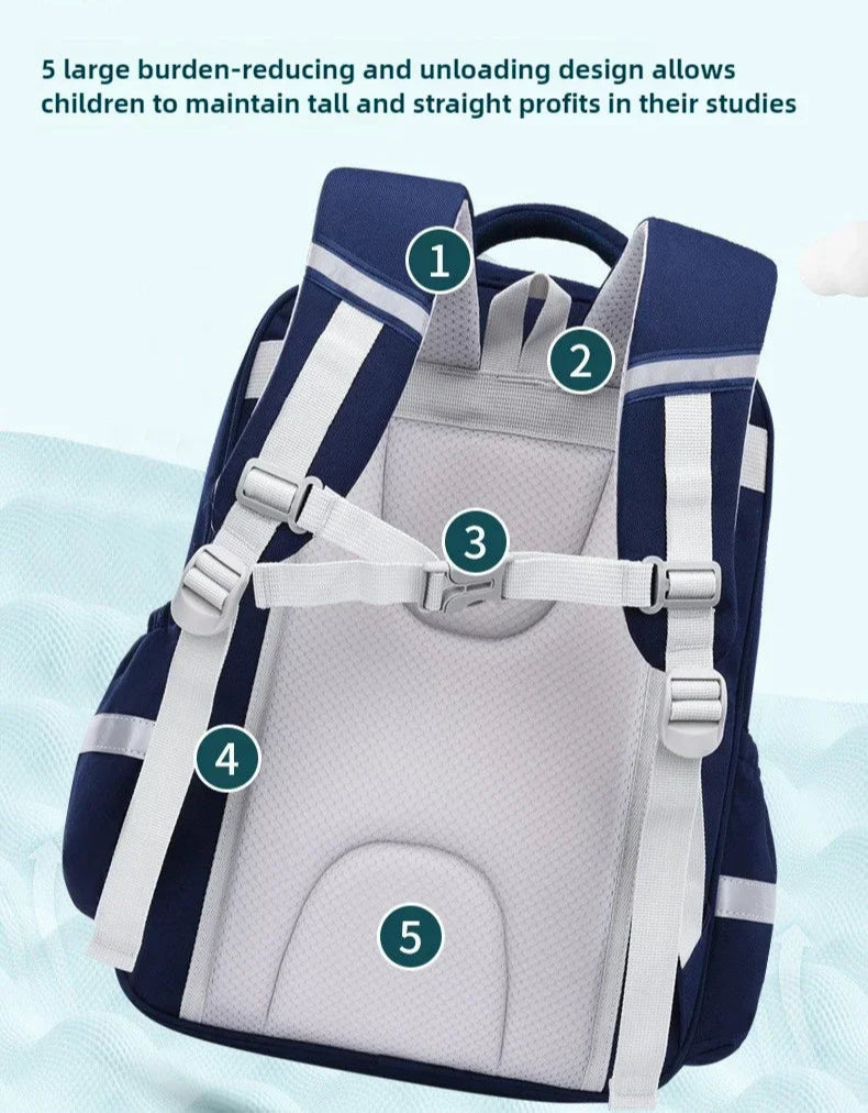 Designed with 5-point load-reduction technology, this backpack ensures even weight distribution to protect the spine and improve posture.